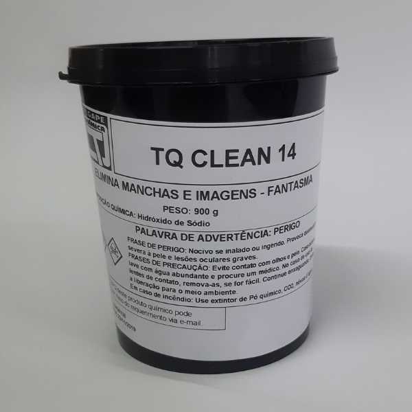 O TQ Clean 14 é uma pasta alcalina com detergentes especiais e um fino efeito abrasivo. Desengraxa e da mordente a malhas novas e usadas. É também muito eficiente na limpeza de quadros metálicos antes da colagem. Disponível em embalagens de 1 litro ou 1 quilo.